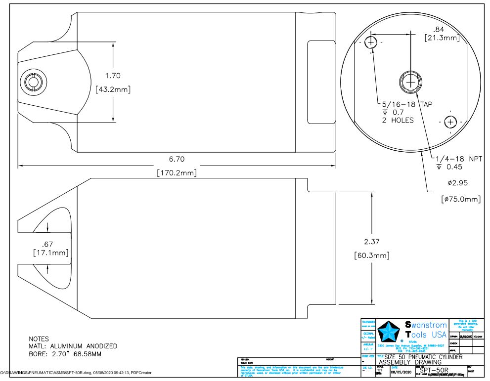 Item # SPT-50R, Robotic Nipper Cylinder, Size 50