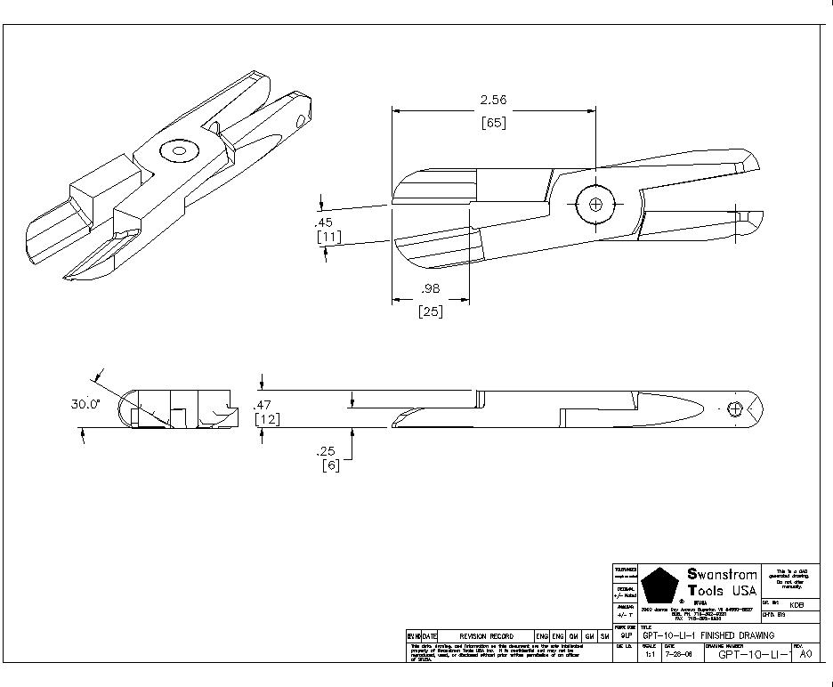 Long inline thin blade with a jaw length of 65mm, which is longer than the standard GPT-10-LI blade. 0.35 open?