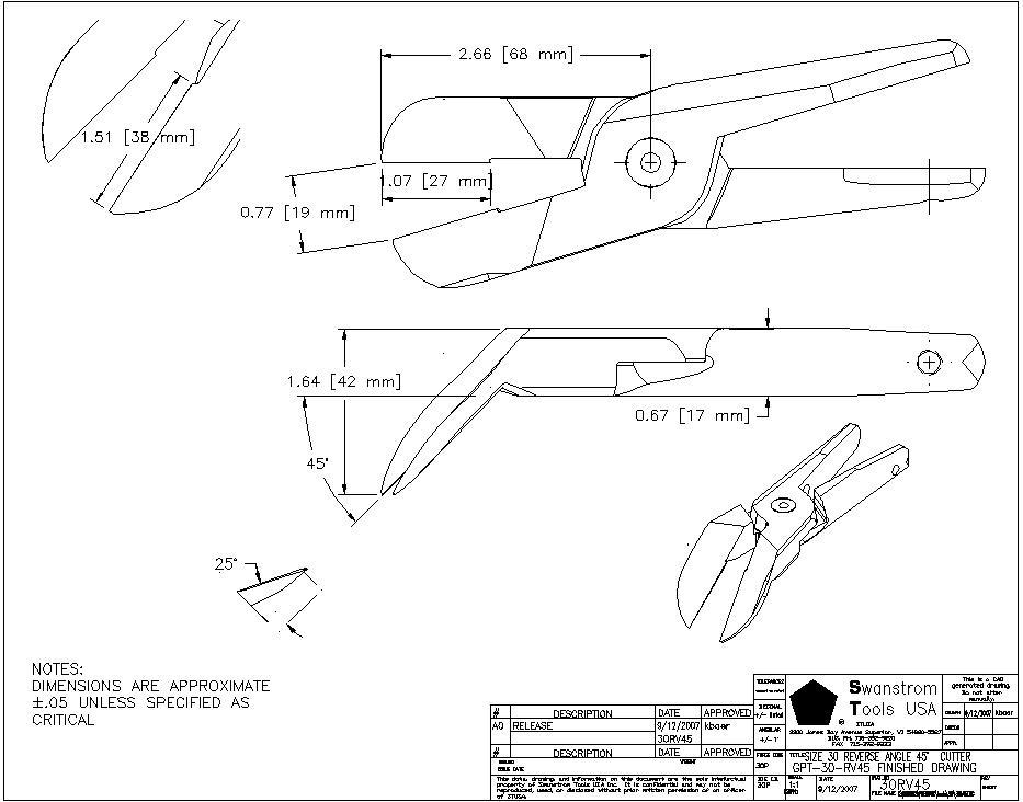 The Swanstrom GPT-30-RV45 is one of the only pneumatic nipper blade on the market designed for inverse action cutting. Engineered for specialized applications where conventional cutting motion is ineffective or impractical, this blade expands what’s possible in precision cutting operations. the GPT-30-RV45 delivers a controlled inverse cutting action, enabling operators to access tight geometries, reverse-facing materials, and challenging workpieces.