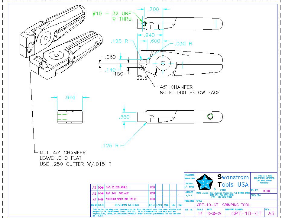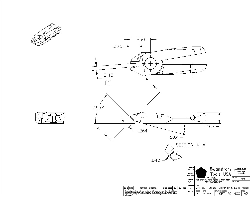 ![]() Size 20, 45 Degree Angle, Shear Cut Crimping Jaw |
