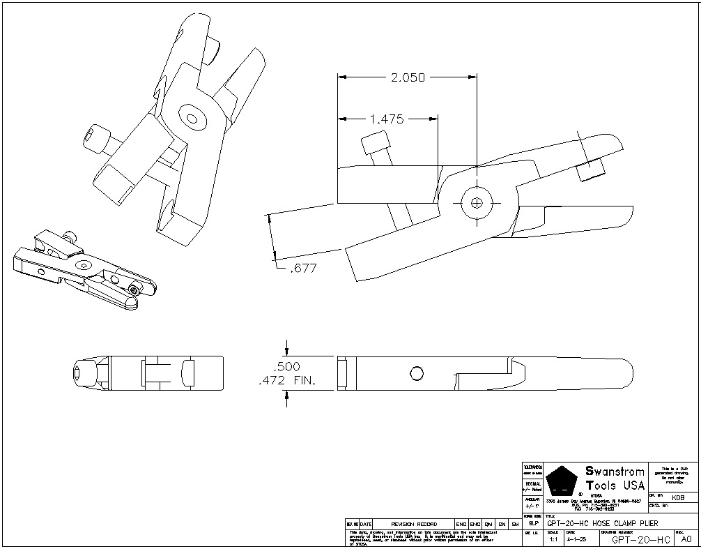 ![]() Drawing for Size 20, Hose Clamp Plier for W405 |