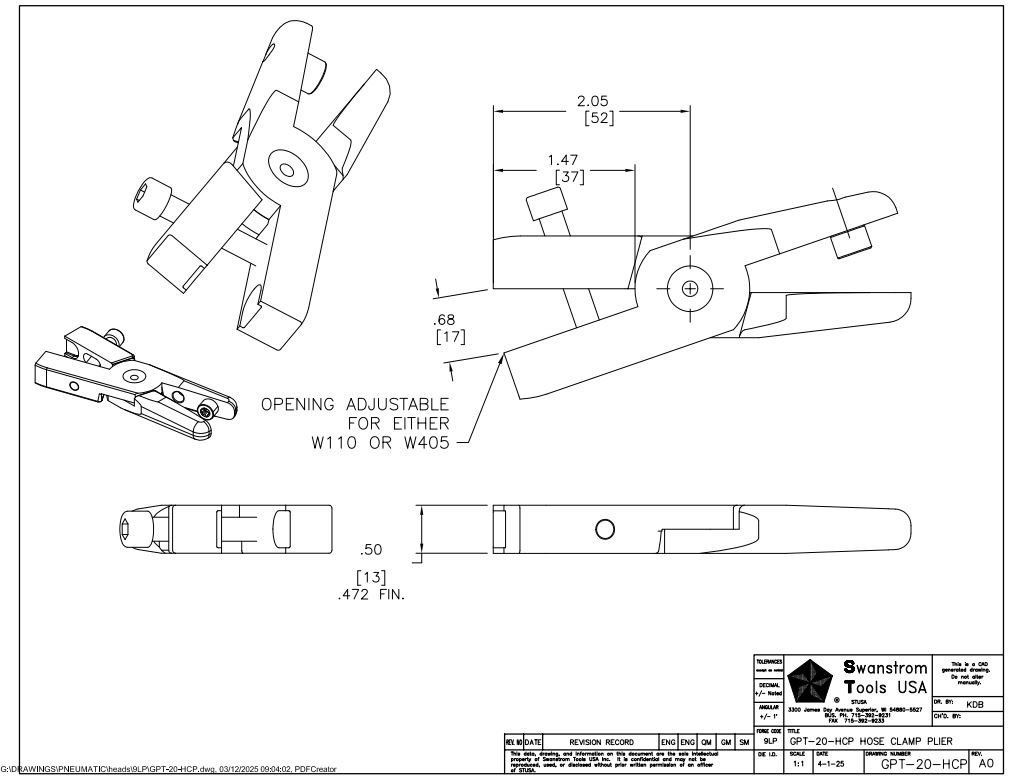 ![]() Drawing for Size 20, Hose Clamp Plier for W110 |