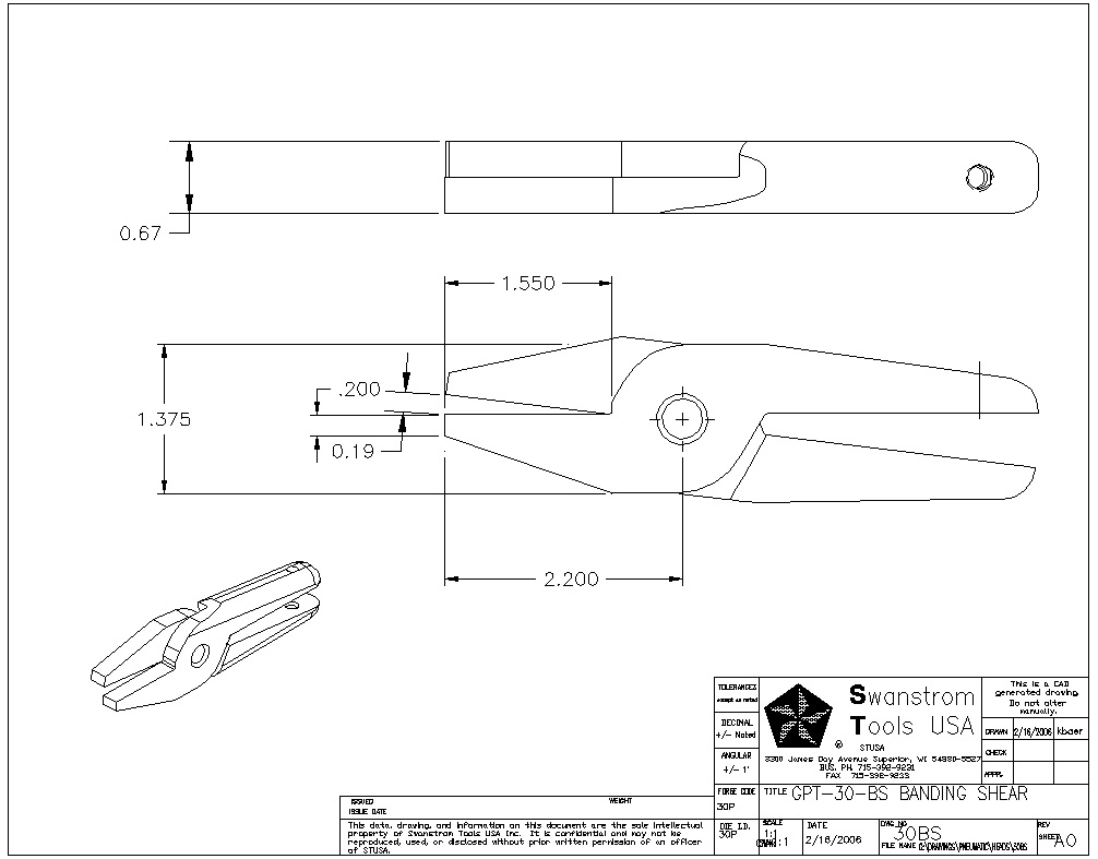 ![]() Drawing for Banding Shears |